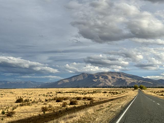 Und dann, kurz hinter dem Burkes Pass konnten wir tatsächlich den ersten Blick auf den Lake Tekapo erhaschen. Er leuchtete zwar (wegen der dichten Wolkendecke) nicht so blau wie von Philip versprochen, sah aber trotzdem einfach traumhaft schön aus.