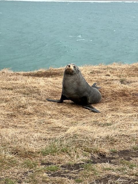 Als der Regen dann endlich nachließ, versuchten wir (so gut wie möglich), das Zelt von Dreck und Nässe zu befreien, verstauten es einfach in einem großen Karton und starteten zum ins Katiki Historic Reserve zum Sea Lions Viewpoint. Die Seelöwen ließen sich durch unsere Anwesenheit nicht aus der Ruhe bringen und so konnten wir sie ungestört beobachten.